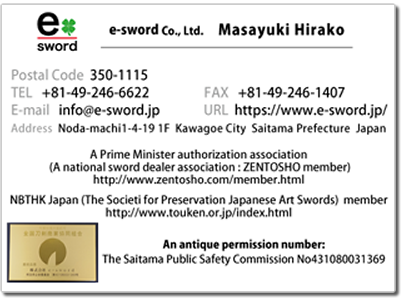 “e-sword” have an antique permission from Japan Saitama Public Safety. We are the societi for preservation Japanese Art Swords member.